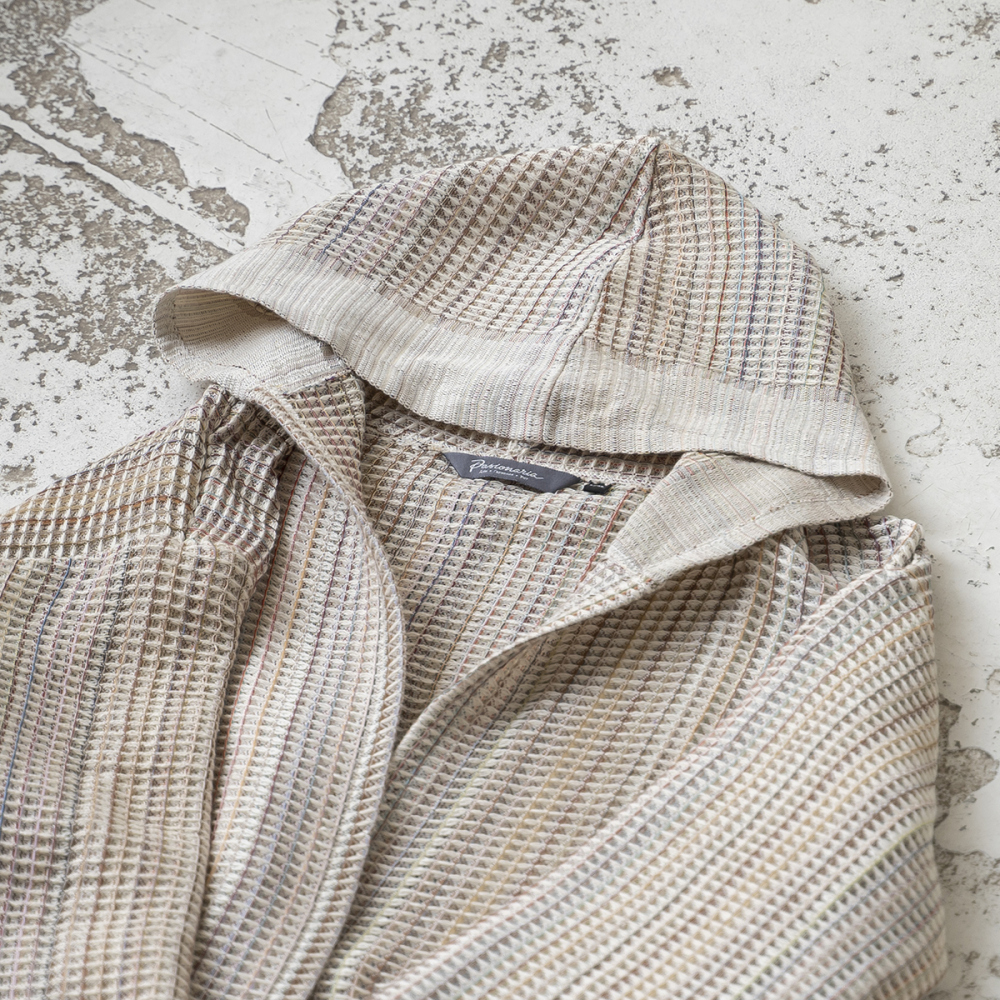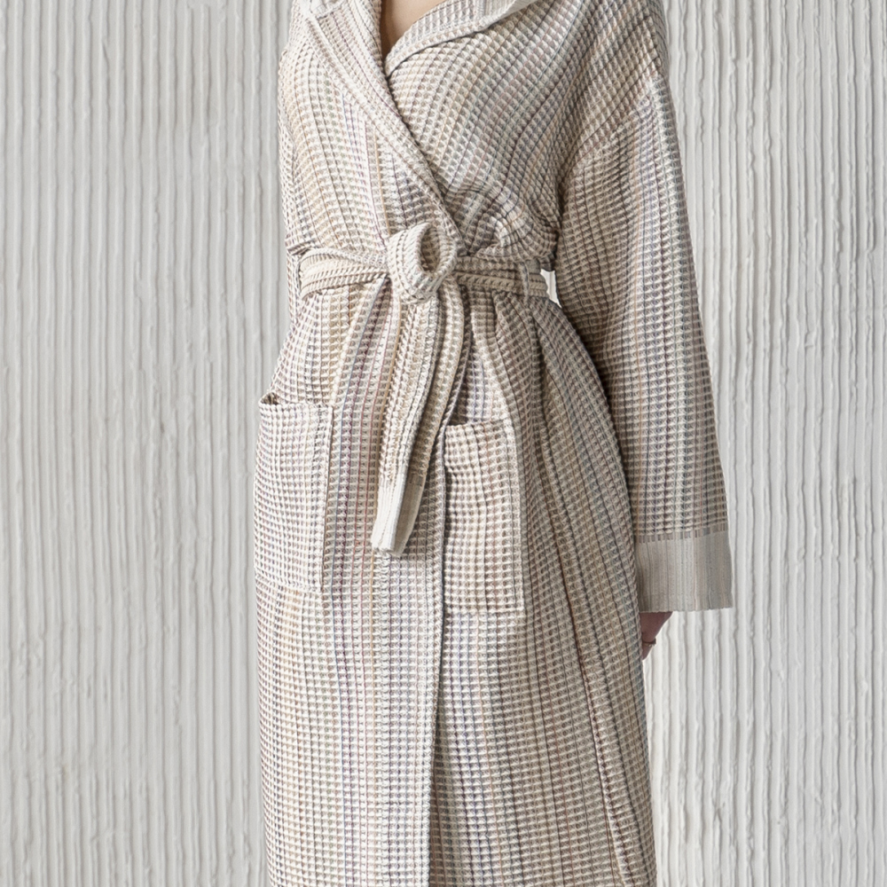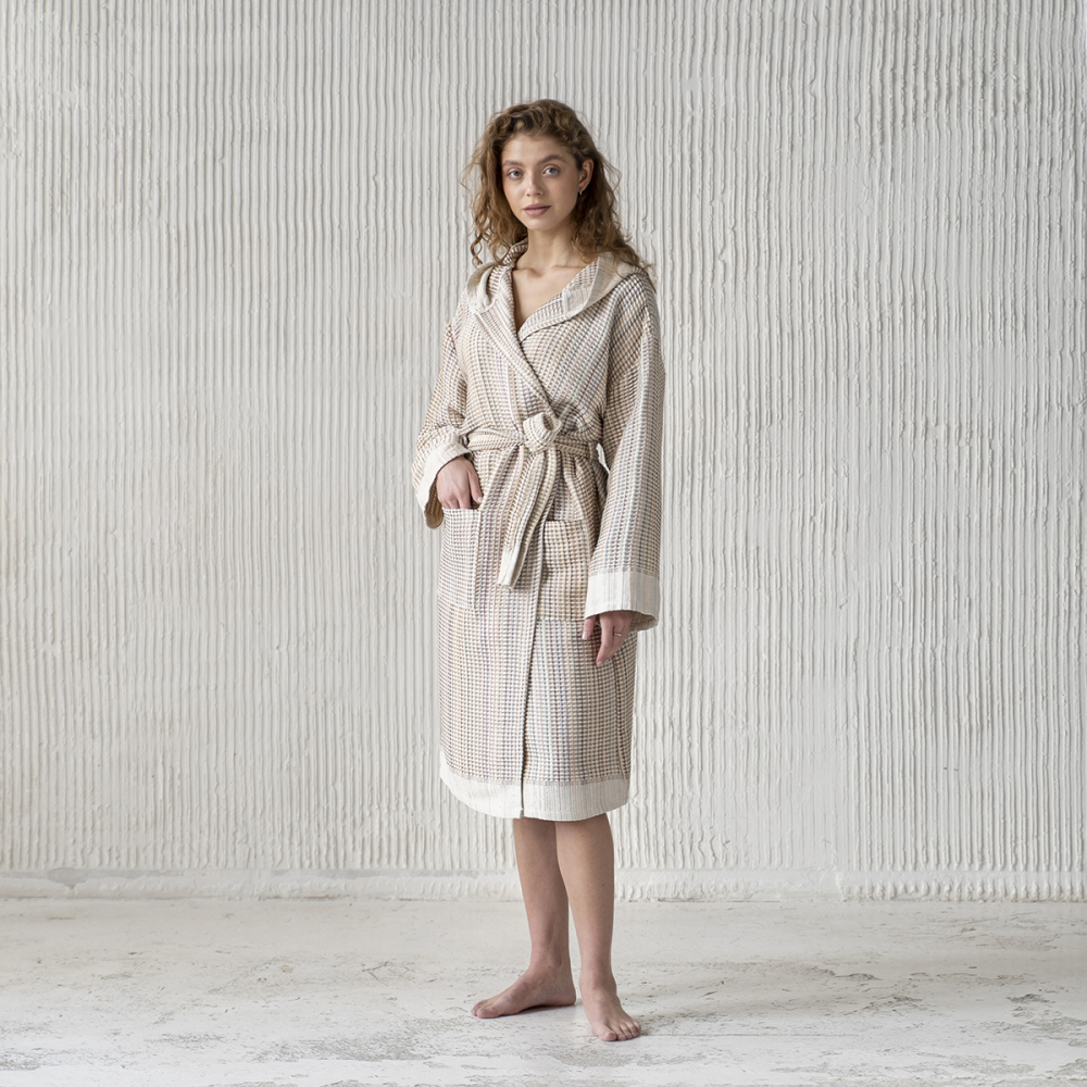 Вафельный халат с поясом и капюшоном. Плотность ткани: 800 г/м2. Состав: 50% бамбук/50% хлопок. Производство: Турция