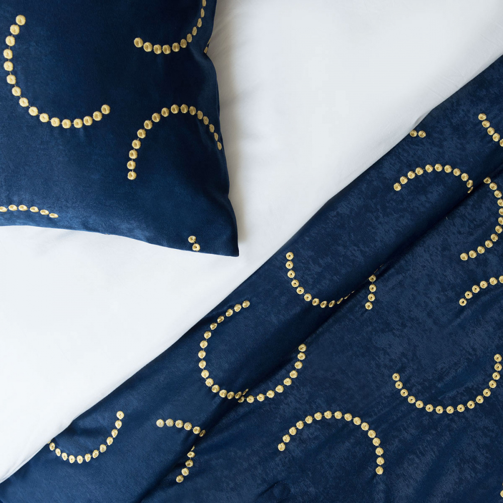 Стеганое покрывало с фигурной вышивкой из мягкой декоративной ткани-софт "Довер". Состав - 100% полиэстер. В комплект входят декоративные наволочки.