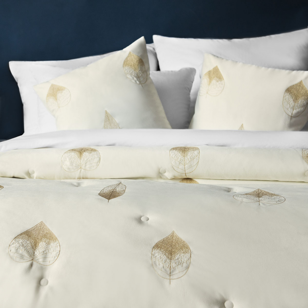 Стеганое покрывало с вышивкой из плотной декоративной ткани "Ким". Состав - 100% полиэстер. В комплект входят декоративные наволочки.