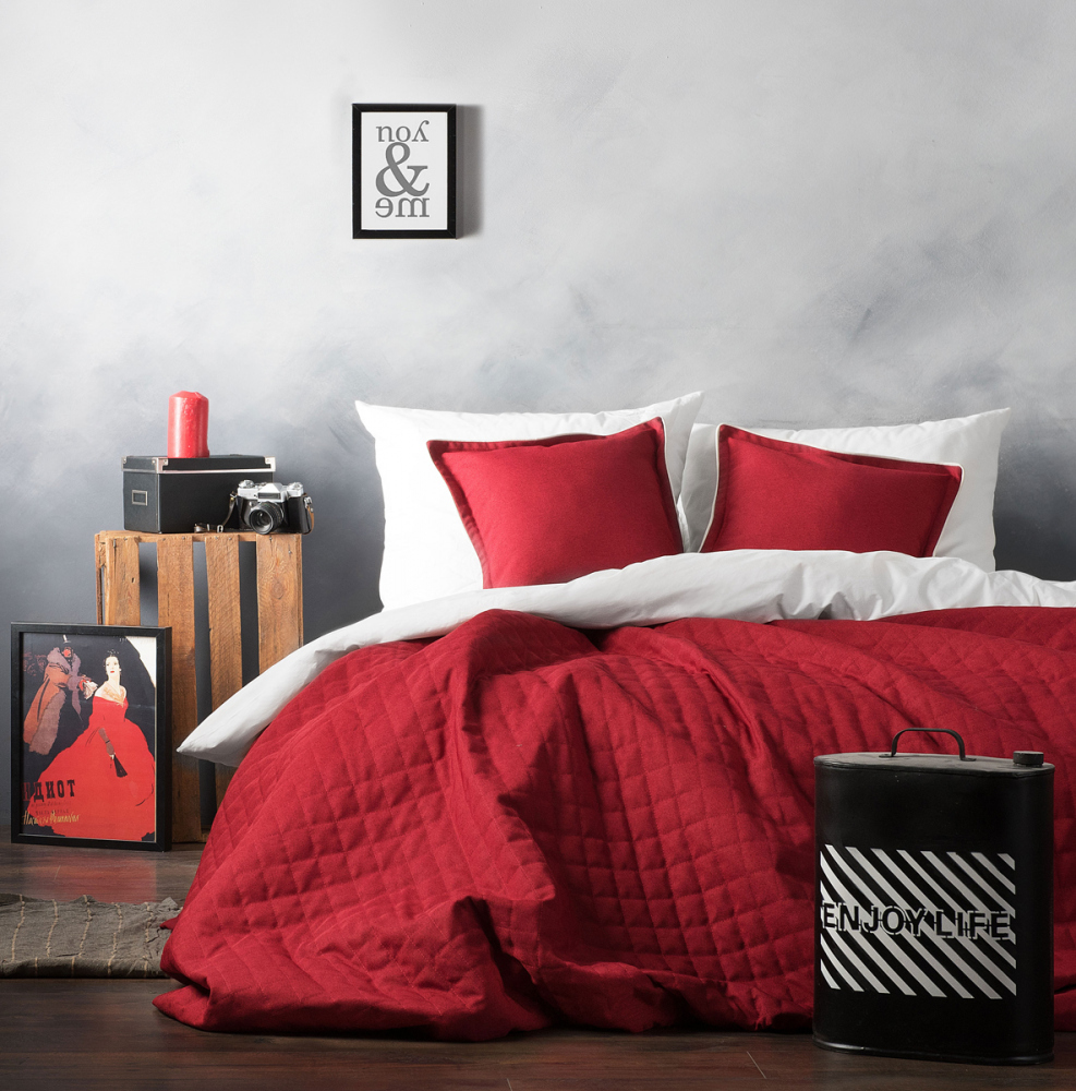 Стеганое покрывало с планками из плотной декоративной ткани. В комплект входят декоративные наволочки. Состав - 100% полиэстер.