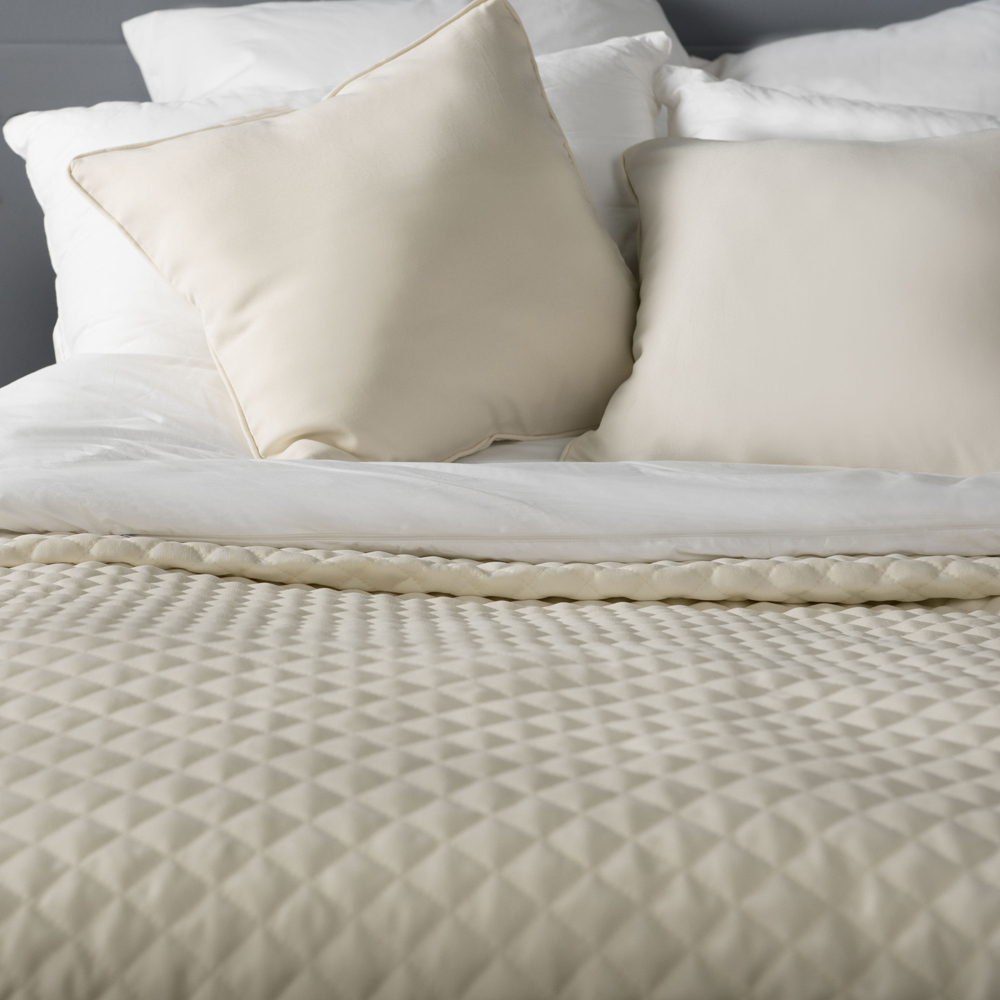 Стеганое покрывало из декоративной ткани. В комплект входят декоративные наволочки. Состав - 100% полиэстер.