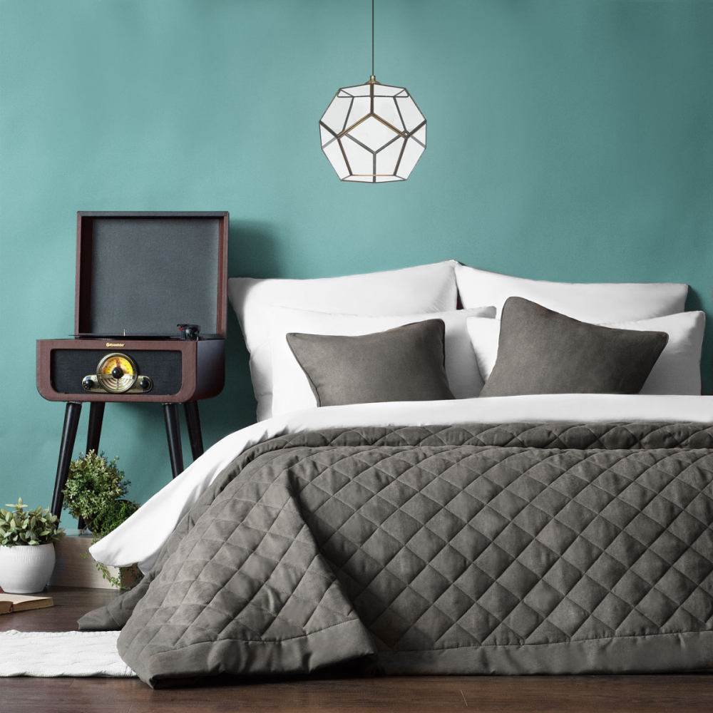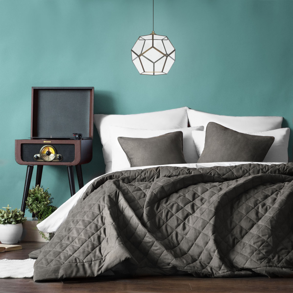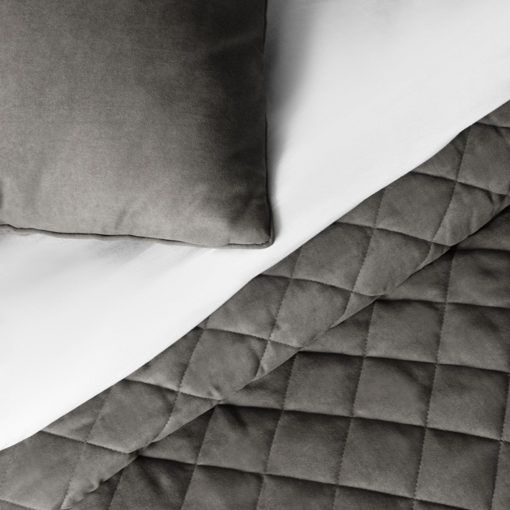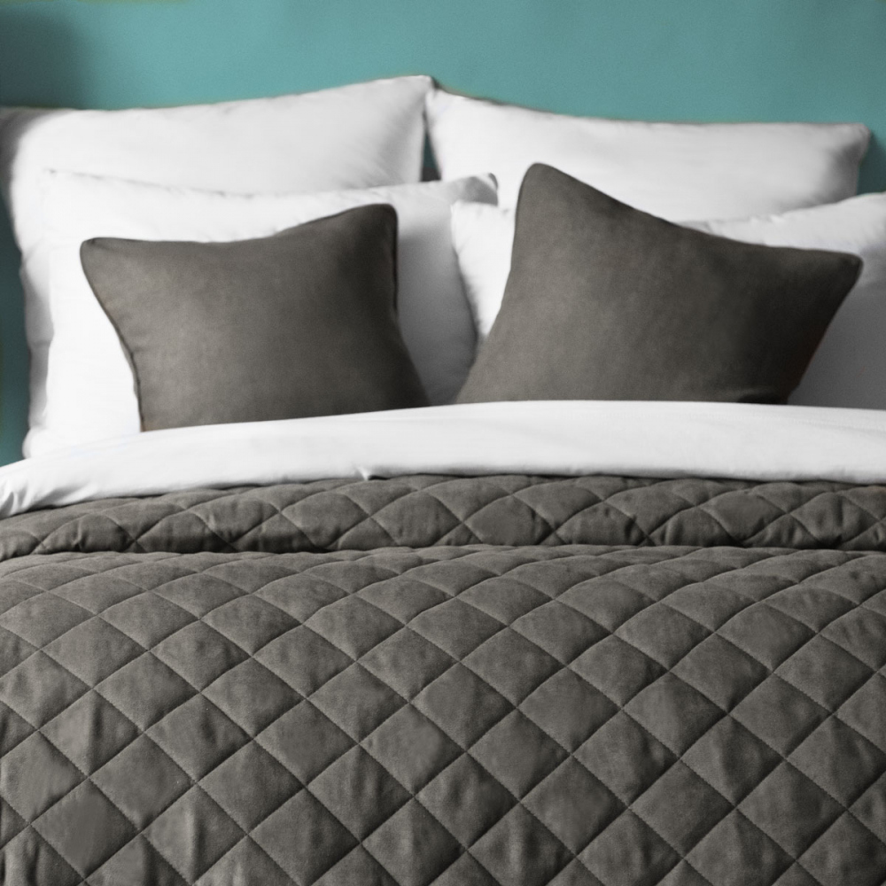 Стеганое покрывало с планками из мягкой бархатистой ткани. В комплект входят декоративные наволочки. Состав - 100% полиэстер.