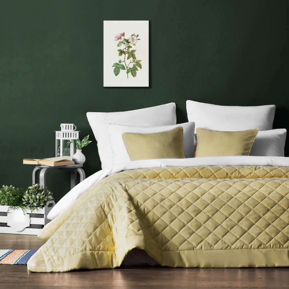 Стеганое покрывало с планками из мягкой бархатистой ткани. В комплект входят декоративные наволочки. Состав - 100% полиэстер.