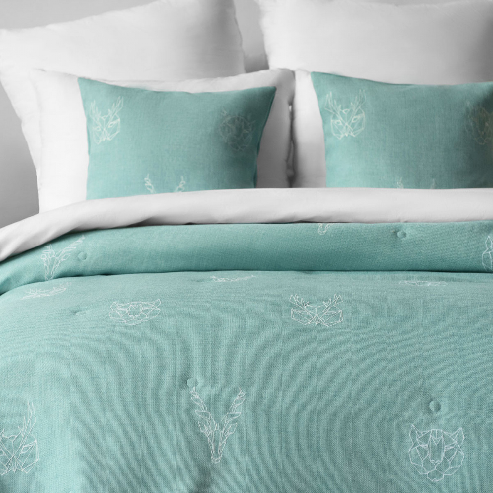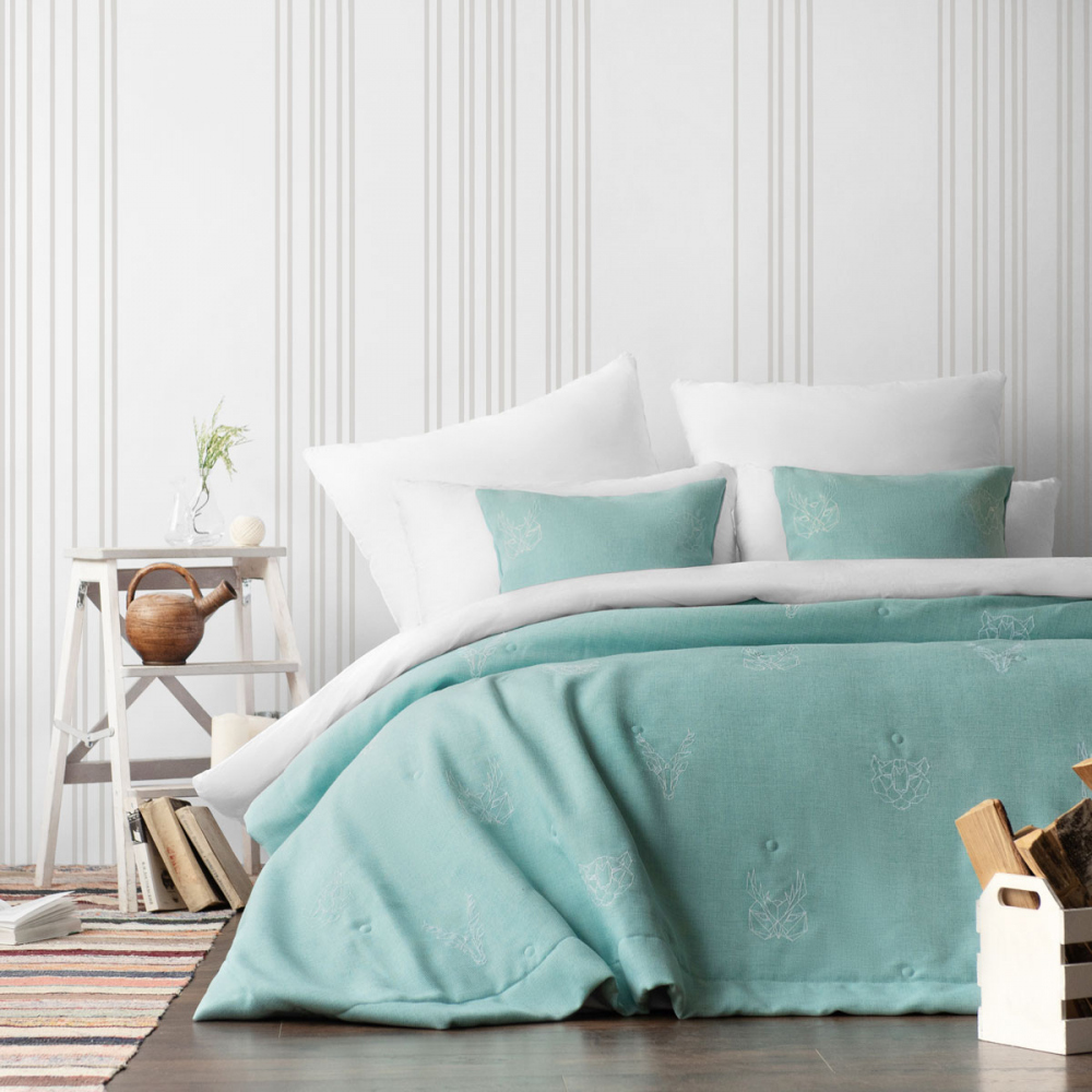 Стеганое покрывало из декоративной ткани "Джерри" с вышивкой. В комплект входят декоративные наволочки. Состав - 100% полиэстер.
