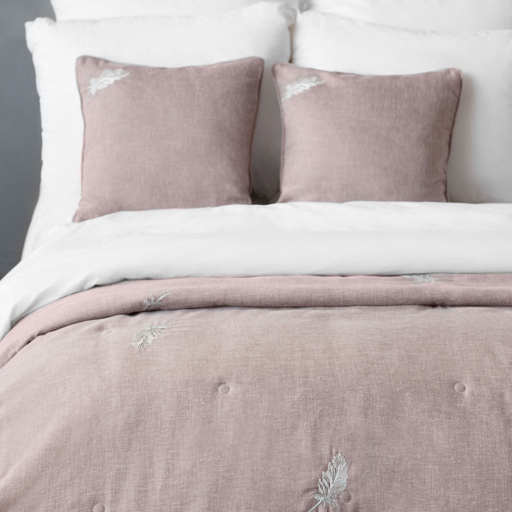 Стеганое покрывало из декоративной ткани "Конни" с вышивкой. В комплект входят декоративные наволочки. Состав - 100% полиэстер.