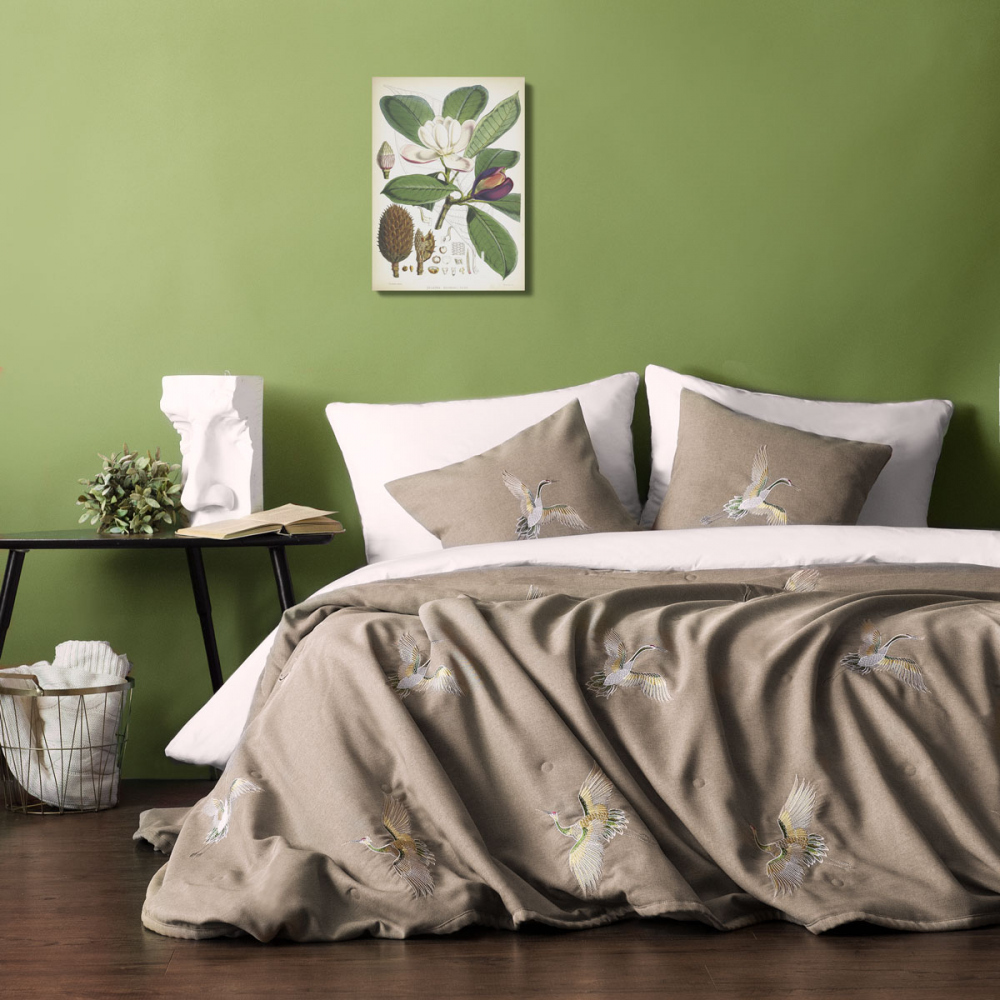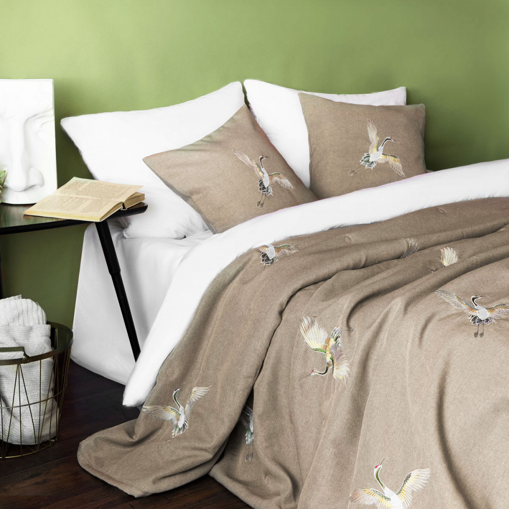 Стеганое покрывало с вышивкой из плотной декоративной ткани "Ибица". Состав - 100% полиэстер.. В комплект входят декоративные наволочки.