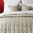 Стеганое покрывало с планками из плотной мягкой ткани, имитирующей натуральную. В комплект входят декоративные наволочки. Состав - 100% полиэстер.