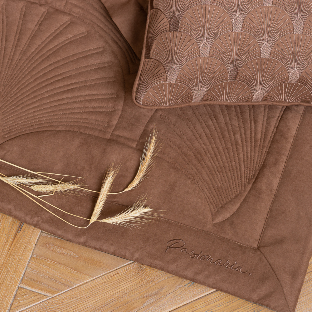 Стеганое покрывало с вышивкой из плотной декоративной ткани "Ким". Состав - 100% полиэстер. В комплект входят декоративные наволочки.