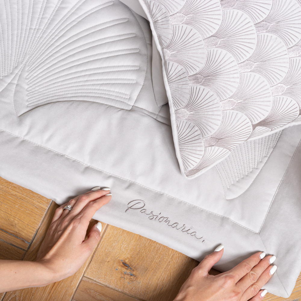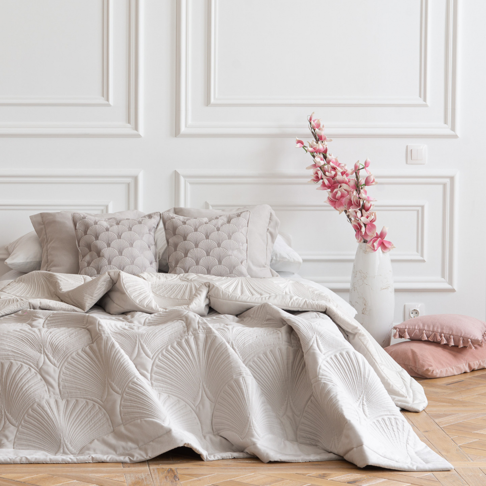 Стеганое покрывало с вышивкой из плотной декоративной ткани "Ким". Состав - 100% полиэстер. В комплект входят декоративные наволочки.