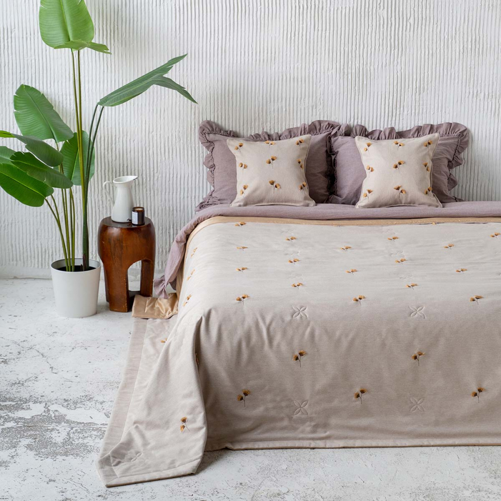 Стеганое покрывало из декоративной ткани "Луара" с вышивкой. В комплект входят декоративные наволочки. Состав - 100% полиэстер.