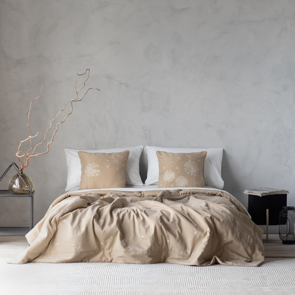 Стеганое покрывало на подкладке с декоративной вышивкой. В комлпект входят декоративные наволочки. Состав - 100% полиэстер.