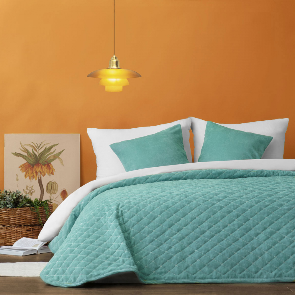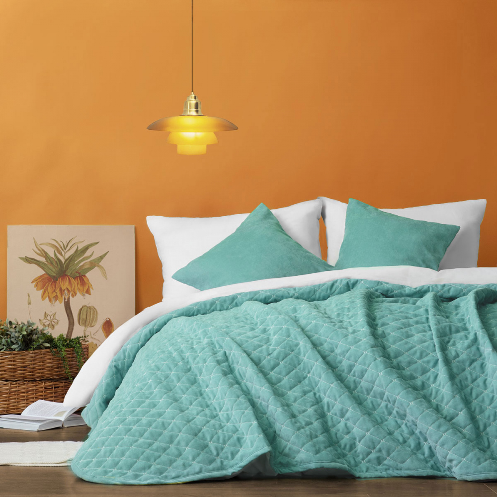 Стеганое покрывало из коллекции "Тина" из мягкой ткани со стёжкой фигурный ромб. В зависимости от размера в комплект могут входить две декоративные наволочки 45х45.