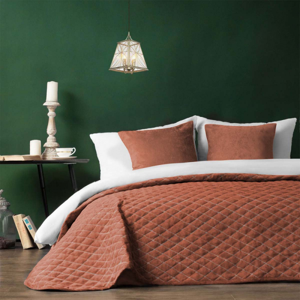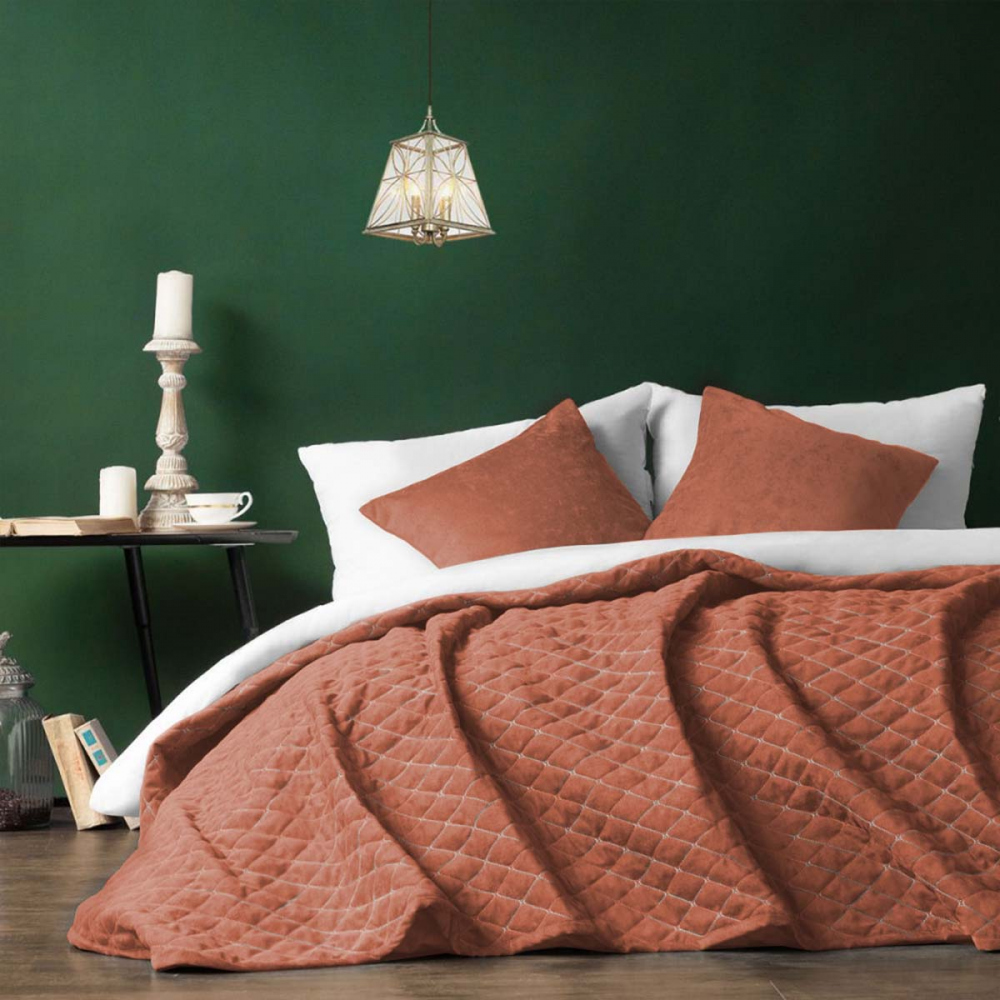 Стеганое покрывало из коллекции "Тина" из мягкой ткани со стёжкой фигурный ромб. В зависимости от размера в комплект могут входить две декоративные наволочки 45х45.