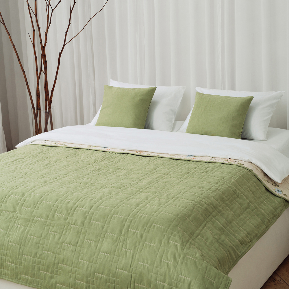 Стеганое покрывало из плотной декоративной ткани "Софт". В комплект входят декоративные наволочки. Подклад покрывала выполнен из сатин-твила с флористическим рисунком, что добавляет ему нотку романтики и свежести, превращая вашу спальню в уютное и стильное пространство. Состав - 100% полиэстер.