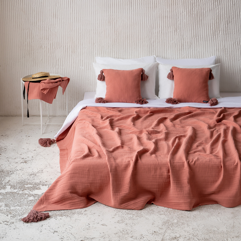 Покрывало из муслина с декоративными элементами. Состав - 100% хлопок.
