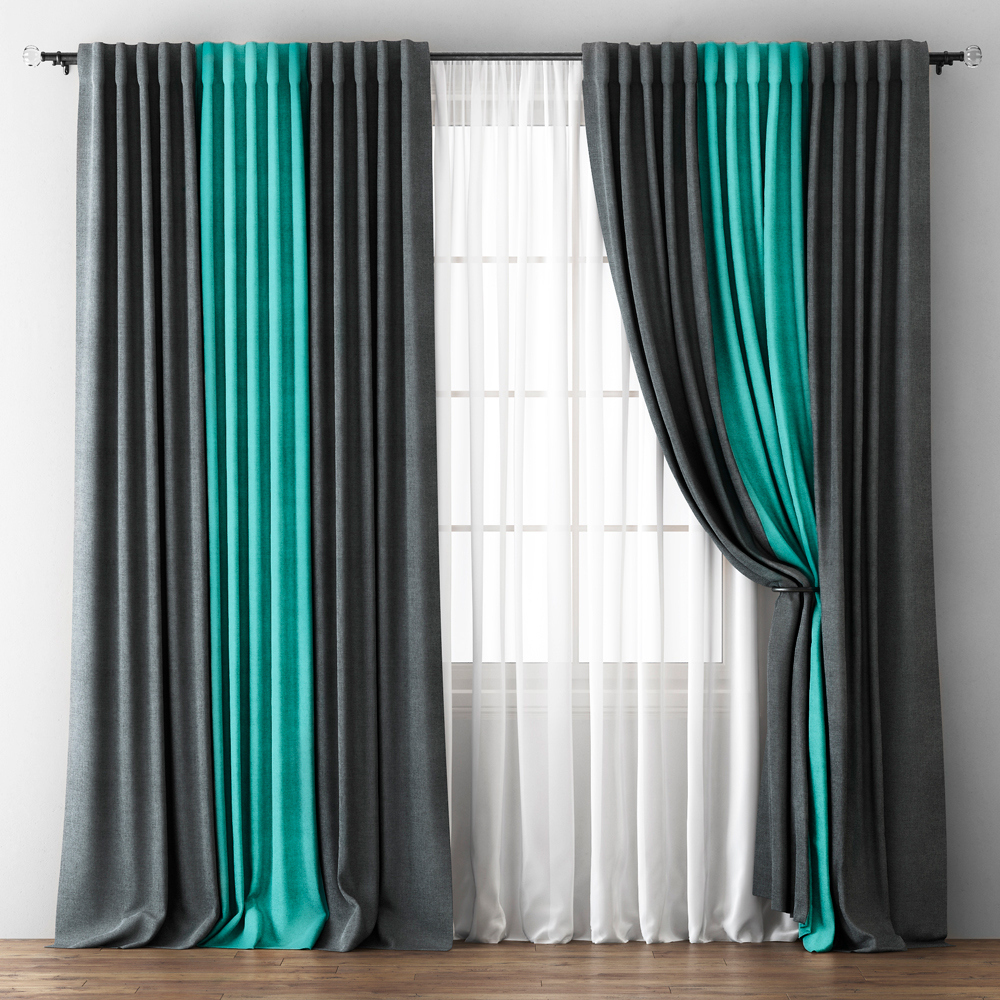 Прямые плотные комбинированные портьеры на универсальной шторной ленте из ткани "Ибица". В комплект входит гардинное полотно. Модель дополнена фигурными подхватами. Состав - 100% полиэстер.