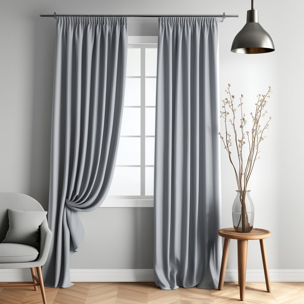 Материал штор однотонный, гладкий, с небольшим блеском.