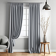 В комплект входят две шторы, которые крепятся на карниз при помощи шторной ленты. Этот вариант крепления обеспечивает простоту подвешивания и эстетичность драпировки. Частоту и глубину складок легко менять на свой вкус с помощью специальных нитей шторной ленты.