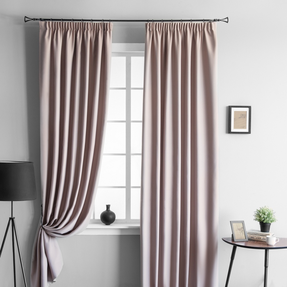 Комплект штор "Блэквуд" выполнен из ткани блэкаут, уровень  светопоглощения до 95%. Ткань обеспечивает абсолютное затемнение в вечерние и ночные часы, но частично пропускает мягкий рассеянный солнечный свет днем. Процент светопоглощения изменяется в зависимости от цвета изделия: например светлые изделия могут пропускать прямой солнечный свет до 10%, а черные, фиолетовые и прочие тёмные тона практически исключат свет в комнате даже в солнечный день. Плотность ткани обеспечивает высокое шумопоглощение и теплоизоляцию помещения.