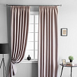 В комплект входят две шторы, которые крепятся на карниз при помощи шторной ленты. Этот вариант крепления обеспечивает простоту подвешивания и эстетичность драпировки. Частоту и глубину складок легко менять на свой вкус с помощью специальных нитей шторной ленты.