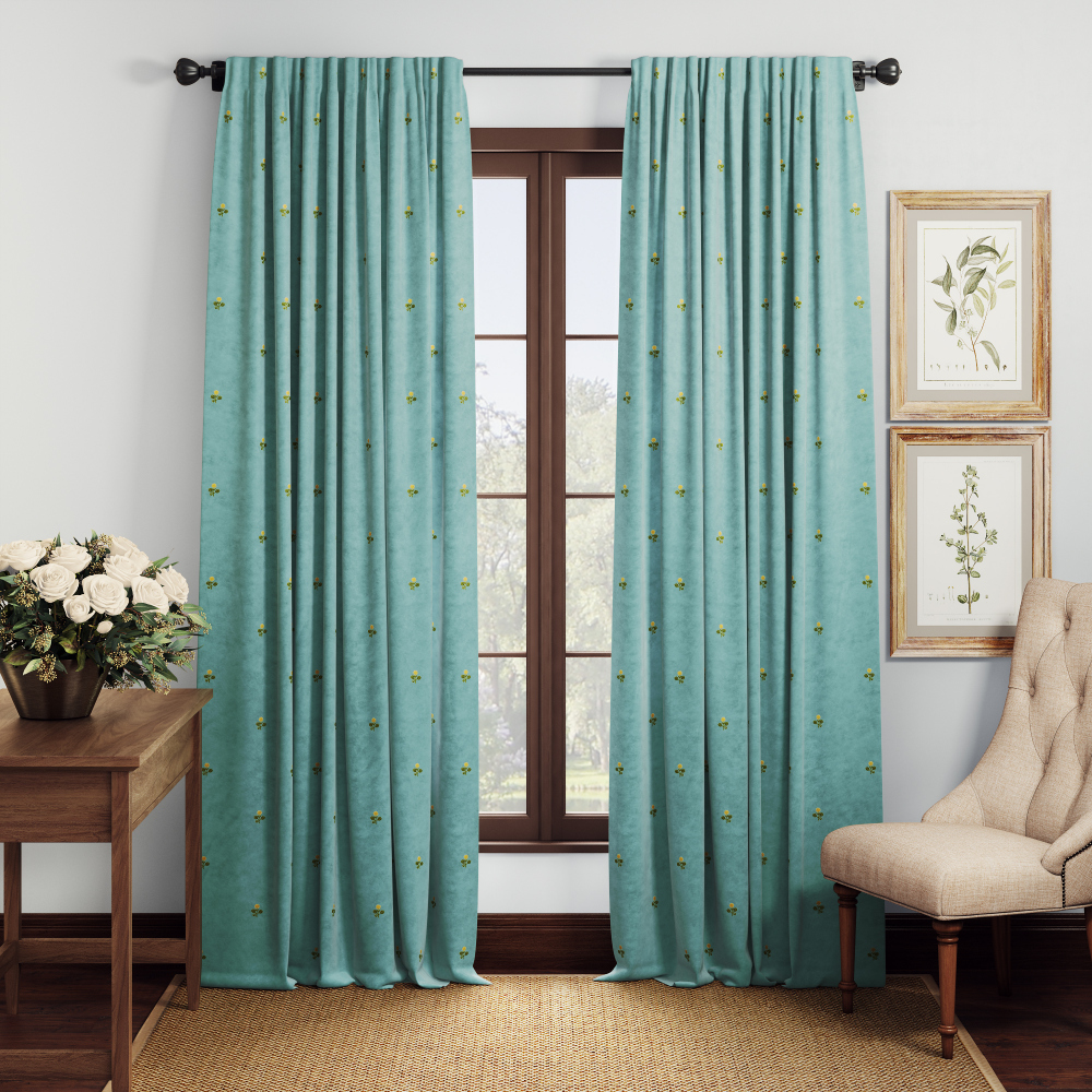 Шторы интерьерные "Гинко " - комплект оригинальных плотных штор с вышивкой. Портьеры выполнены из ткани софт/канвас с цветочным рисунком вышивкой. В комплекте две шторы. Высота каждой шторы 270 см, ширина 145 см. Длинные шторы на шторной ленте и легко вывешиваются на карнизы -гардины с крючками или кольцами.