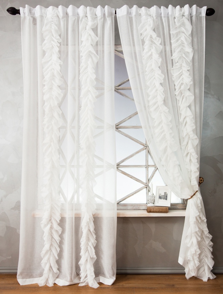 Комплект штор на универсальной шторной ленте из фактурной легкой ткани, имитирующей натуральную. Состав - 100% полиэстер.