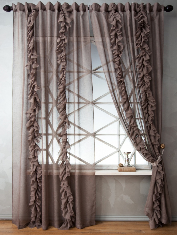Комплект штор на универсальной шторной ленте из фактурной легкой ткани, имитирующей натуральную. Состав - 100% полиэстер.