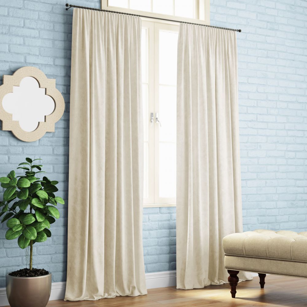 Прямые портьеры на универсальной шторной ленте из матовой ткани-софт. Состав - 100% полиэстер.
