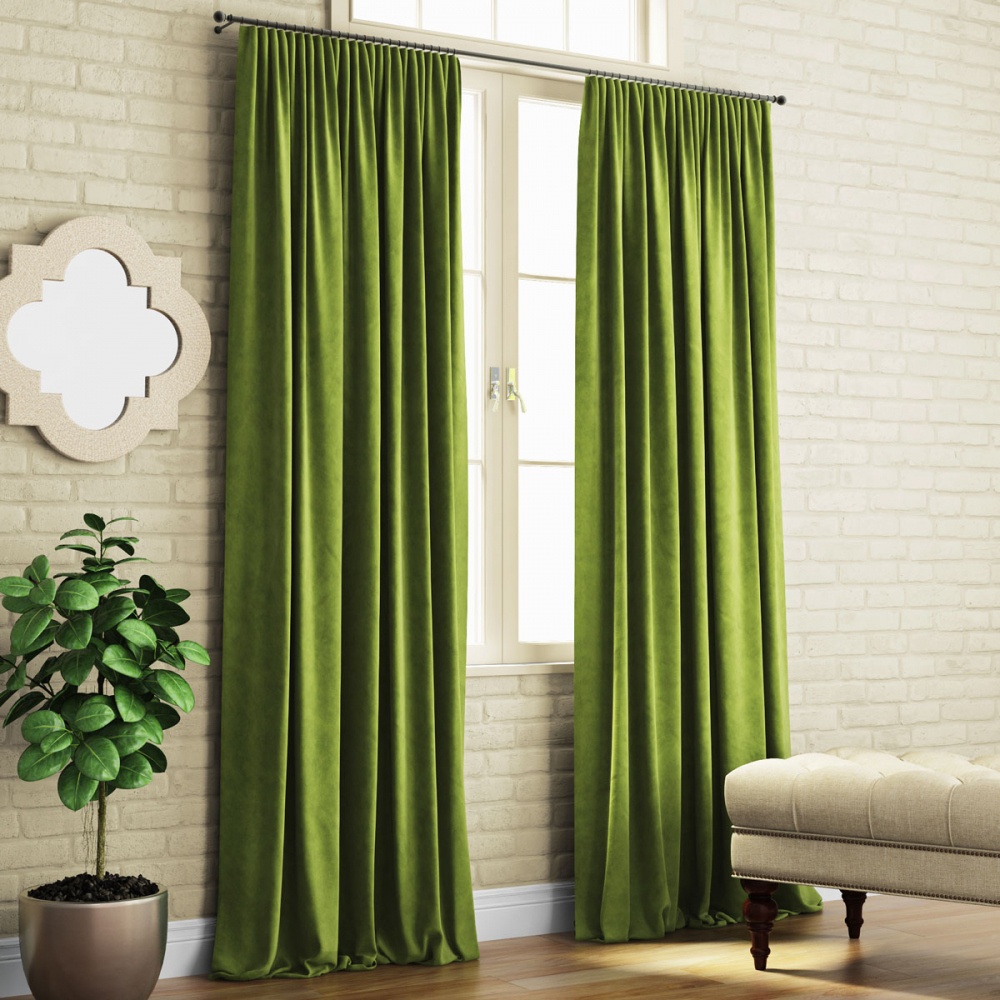 Прямые портьеры на универсальной шторной ленте из матовой ткани-софт. Состав - 100% полиэстер.