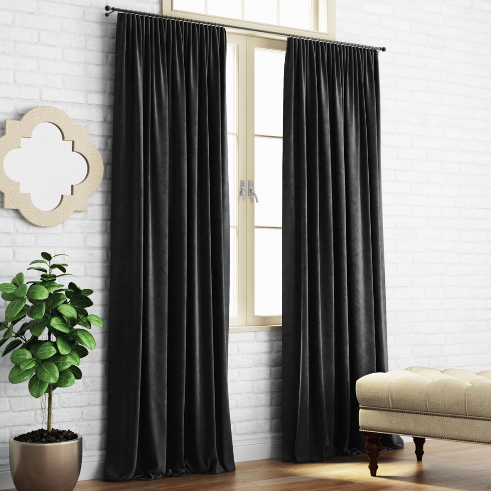 Прямые портьеры на универсальной шторной ленте из матовой ткани-софт. Состав - 100% полиэстер.