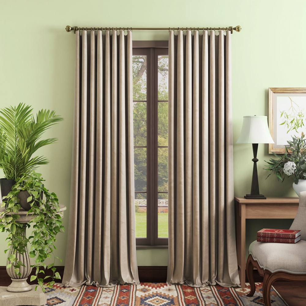 Прямые однотонные портьеры на универстальной шторной ленте из мягкой бархатной ткани "Репаблик". Состав - 100% полиэстер.