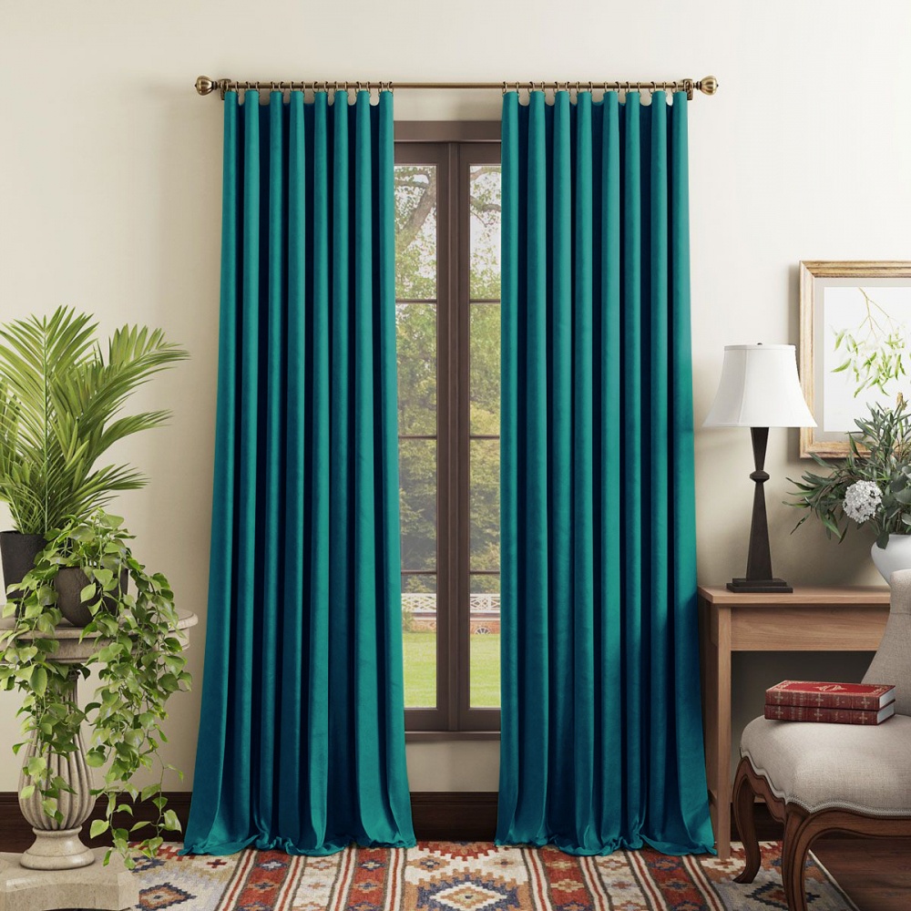 Прямые однотонные портьеры на универстальной шторной ленте из мягкой бархатной ткани "Репаблик". Состав - 100% полиэстер.