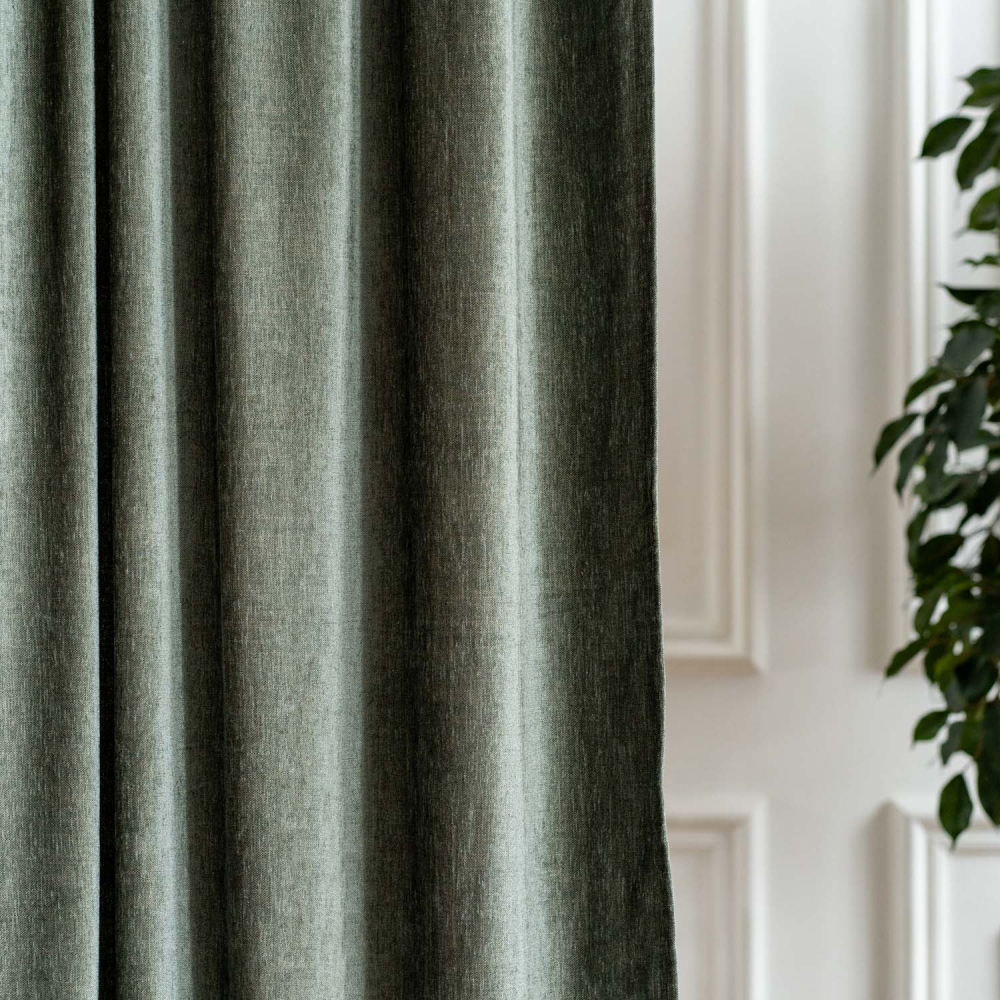 Прямые портьеры из фактурной ткани шенилл на универсальной шторной ленте. Модель дополнена декоративными подхватами. Состав - 100% полиэстер.
