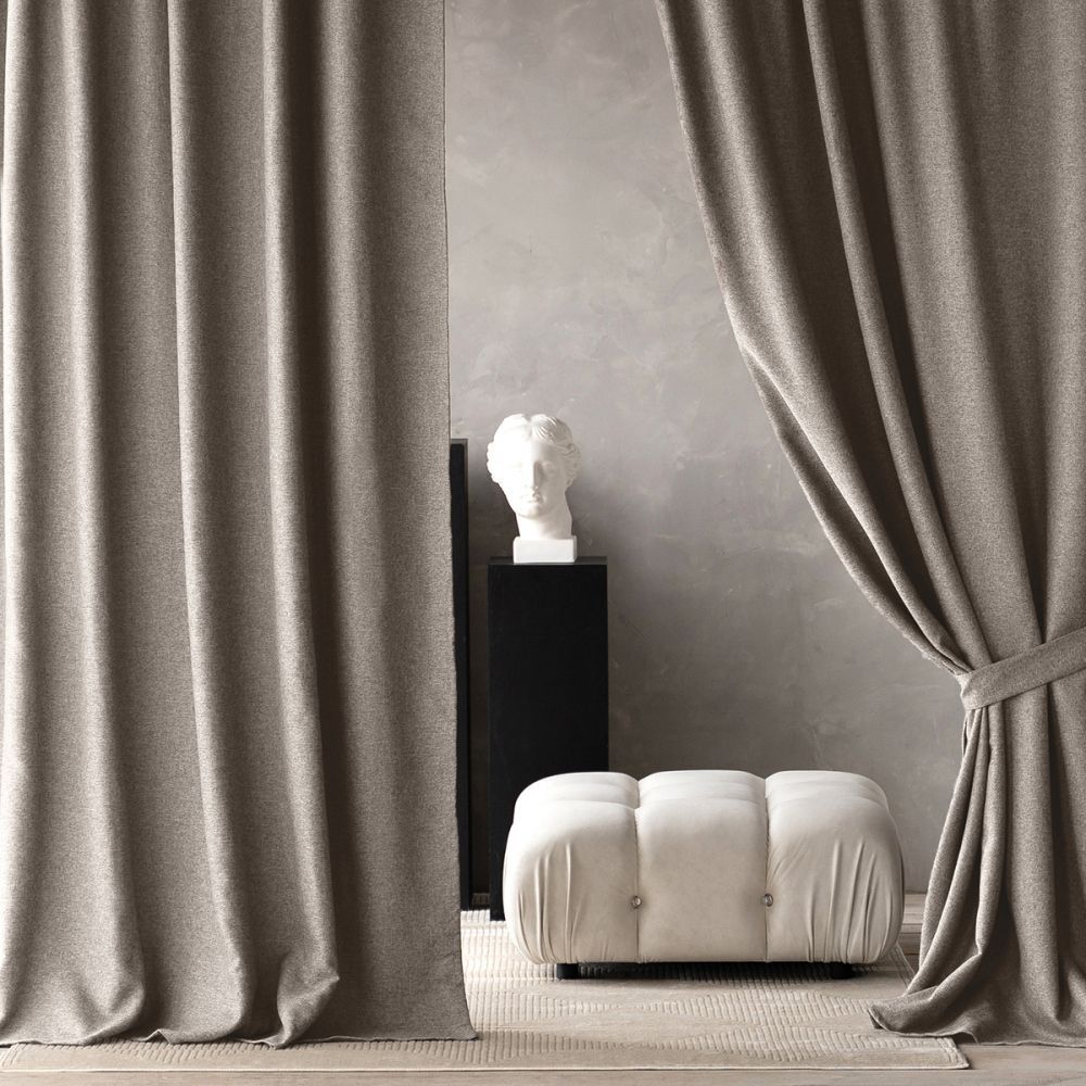 Прямые портьеры на шторной ленте из светонепроницаемой ткани-димаут с фактурой "рогожка". Состав - 100% полиэстер.