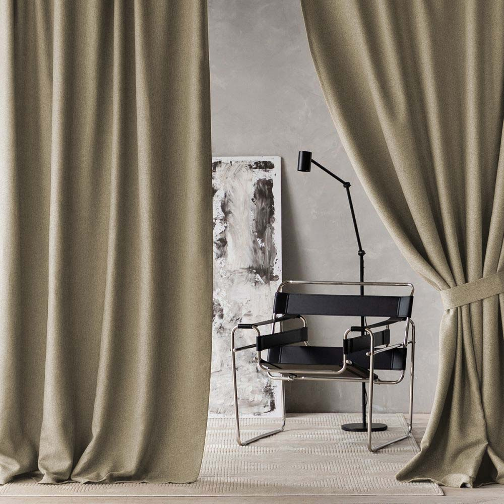 Прямые портьеры на шторной ленте из светонепроницаемой ткани-димаут с фактурой "рогожка". Состав - 100% полиэстер.