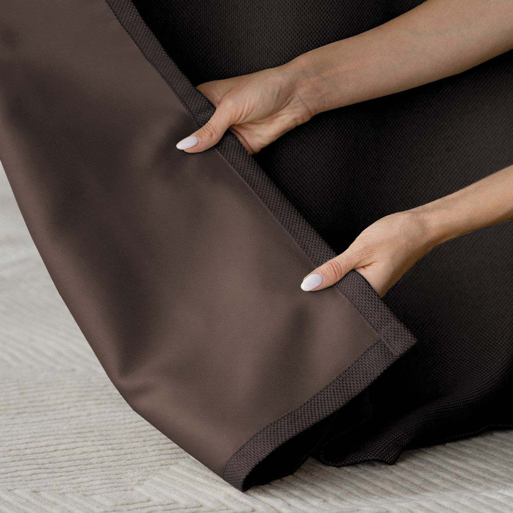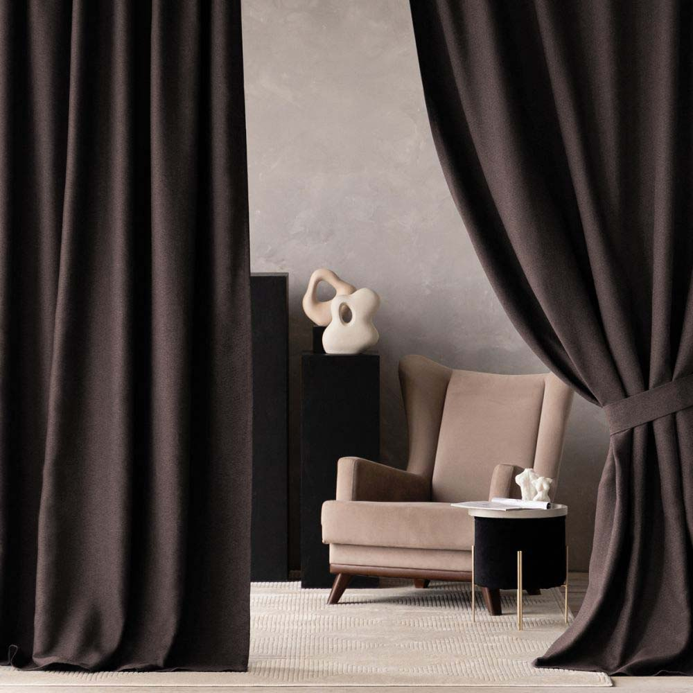 Прямые портьеры на шторной ленте из светонепроницаемой ткани-димаут с фактурой "рогожка". Состав - 100% полиэстер.