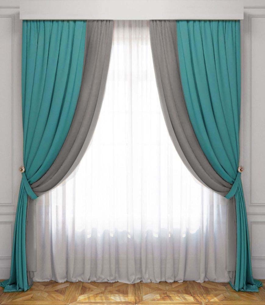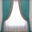 Комплект комбинированных портьер на универсальной шторной ленте из плотной ткани "Софт". В комплект входит однотонная легкая вуаль. Состав - 100% полиэстер.