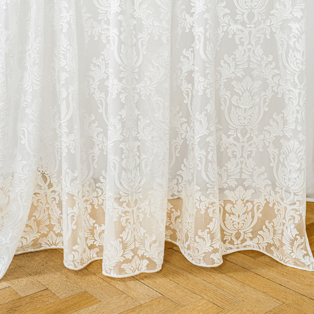 Комплект штор на прозрачной шторной ленте из тюля с вышивкой. Состав - 100% полиэстер.