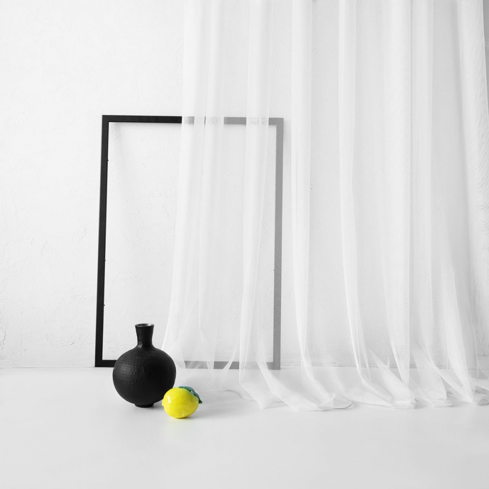 Прямая однотонная портьера на прозрачной шторной ленте из легкой декоративной сетки. Состав - 100% полиэстер.