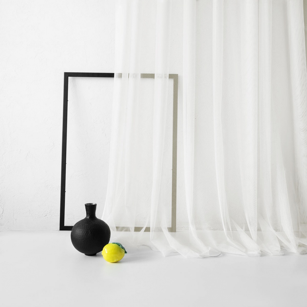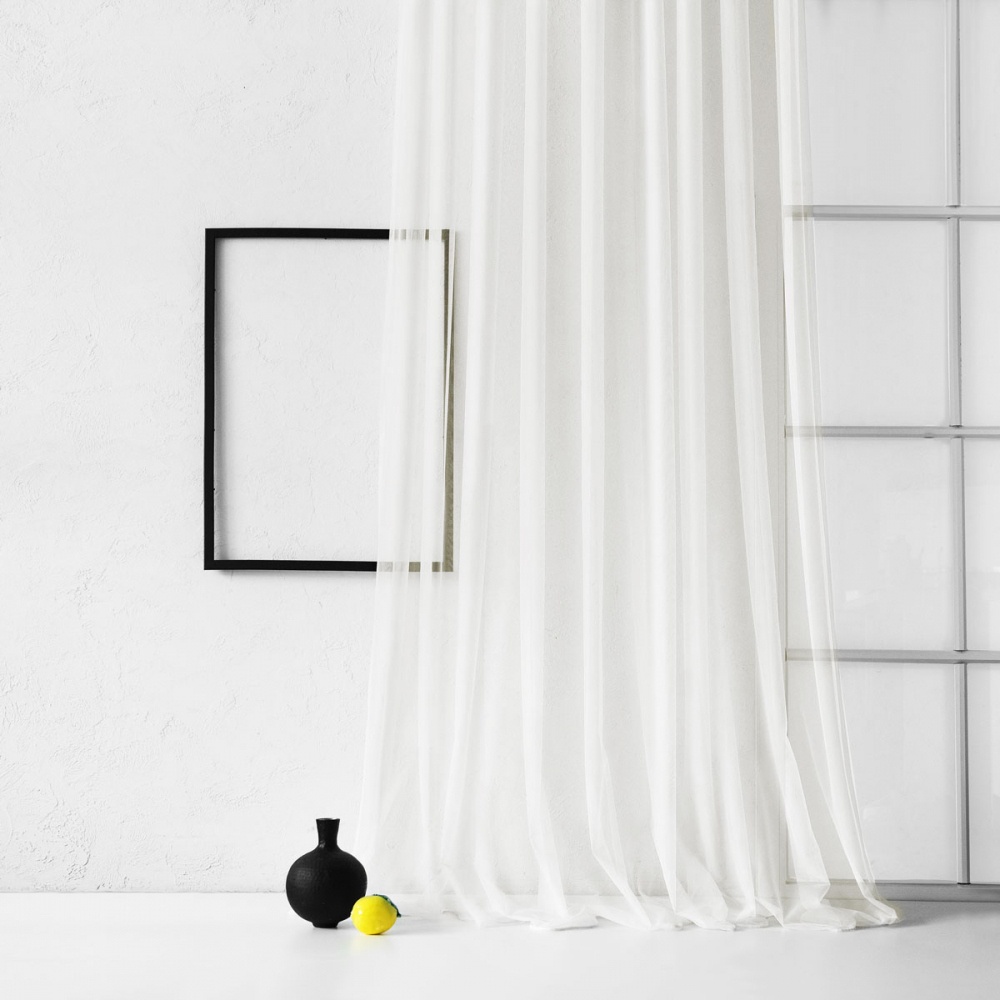 Прямая однотонная портьера на прозрачной шторной ленте из легкой декоративной сетки. Состав - 100% полиэстер.