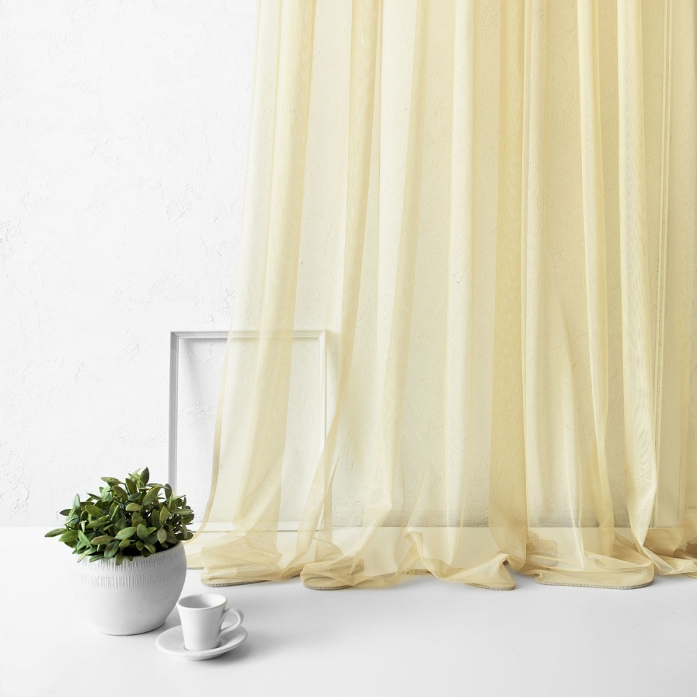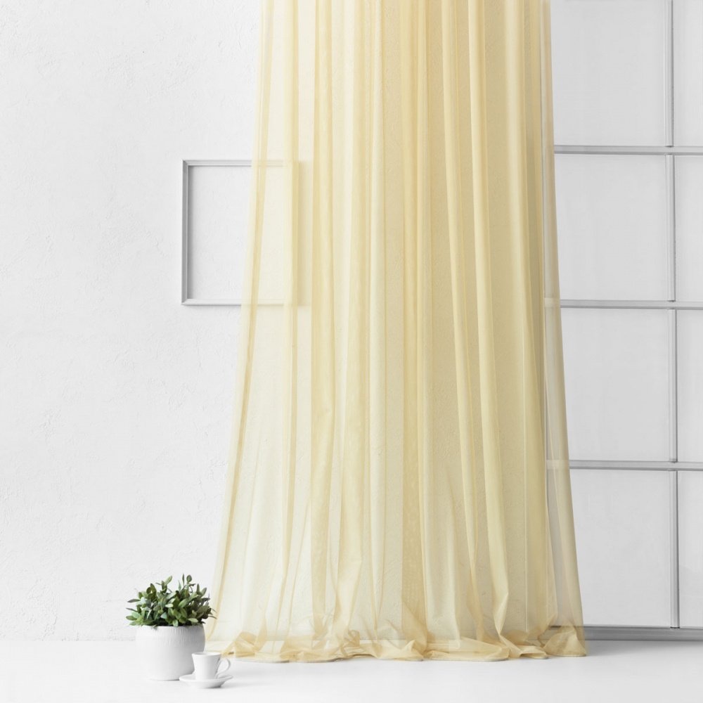 Прямая однотонная портьера на прозрачной шторной ленте из легкой декоративной сетки. Состав - 100% полиэстер.