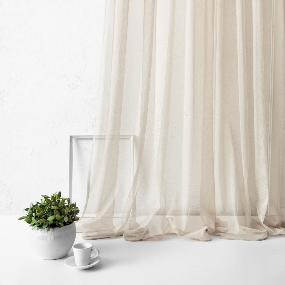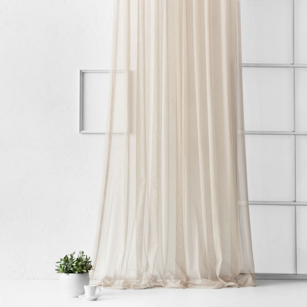 Прямая однотонная портьера на прозрачной шторной ленте из легкой декоративной сетки. Состав - 100% полиэстер.