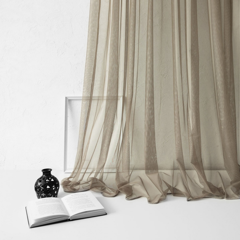 Прямая однотонная портьера на прозрачной шторной ленте из легкой декоративной сетки. Состав - 100% полиэстер.