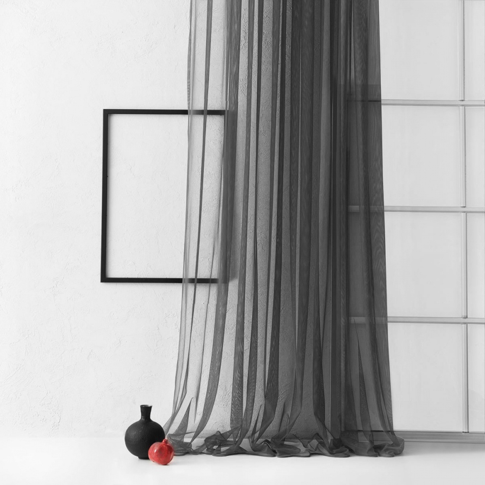 Прямая однотонная портьера на прозрачной шторной ленте из легкой декоративной сетки. Состав - 100% полиэстер.