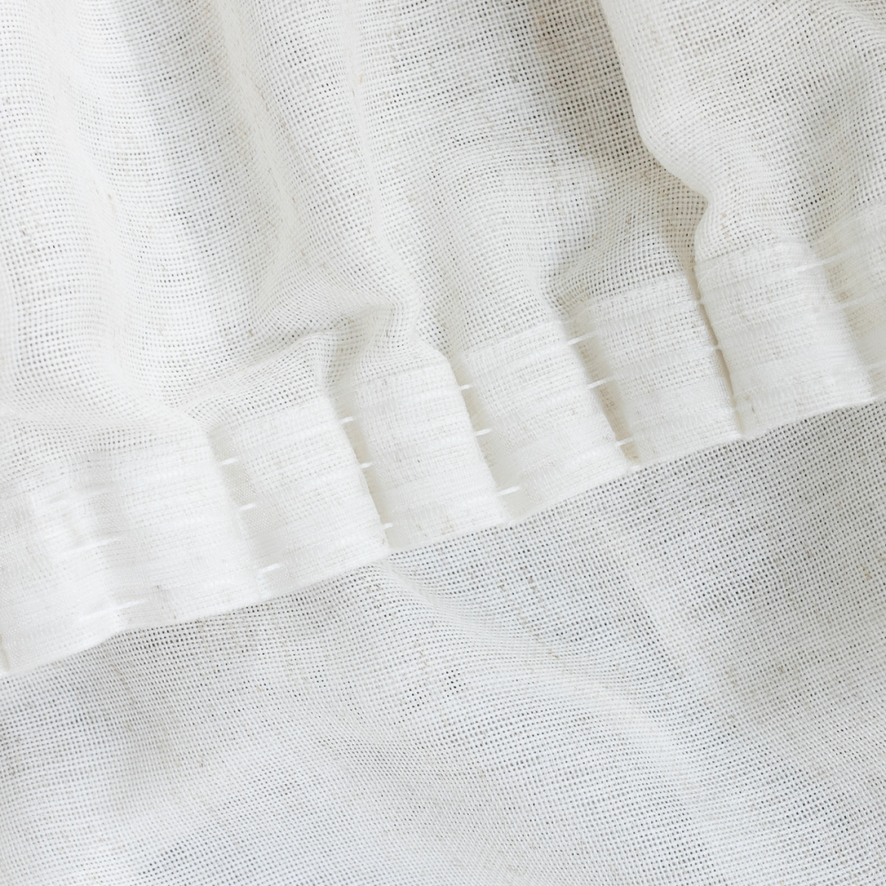 Прямая однотонная портьера на прозрачной шторной ленте из легкой фактурной ткани, имитирующей натуральную. Состав - 100% полиэстер.