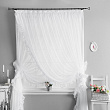 Портьера состоит из двух сшитых по верху изделия полотен из однотонной лёгкой вуали.