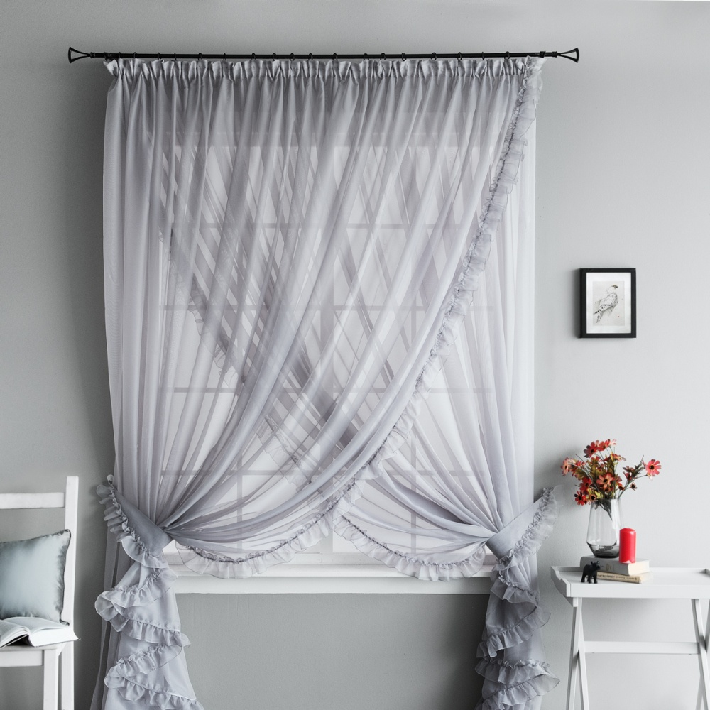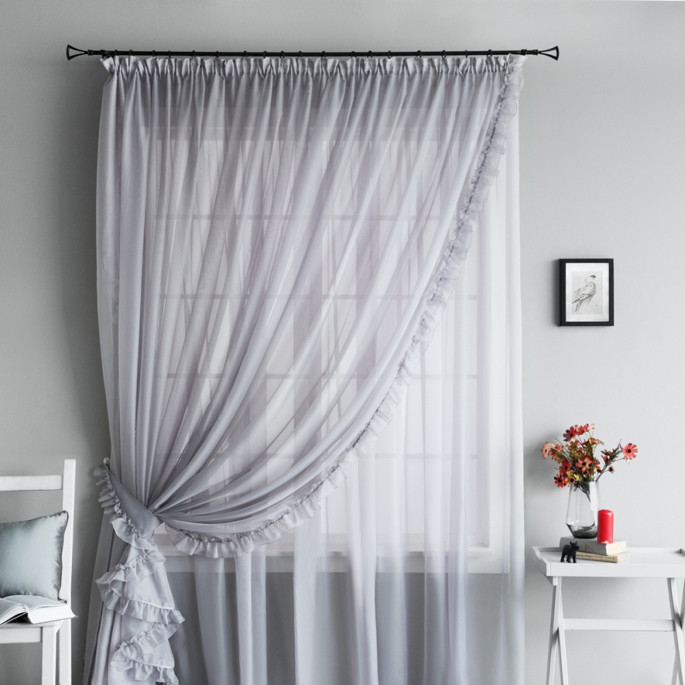 Портьера состоит из двух сшитых по верху изделия полотен из однотонной лёгкой вуали.