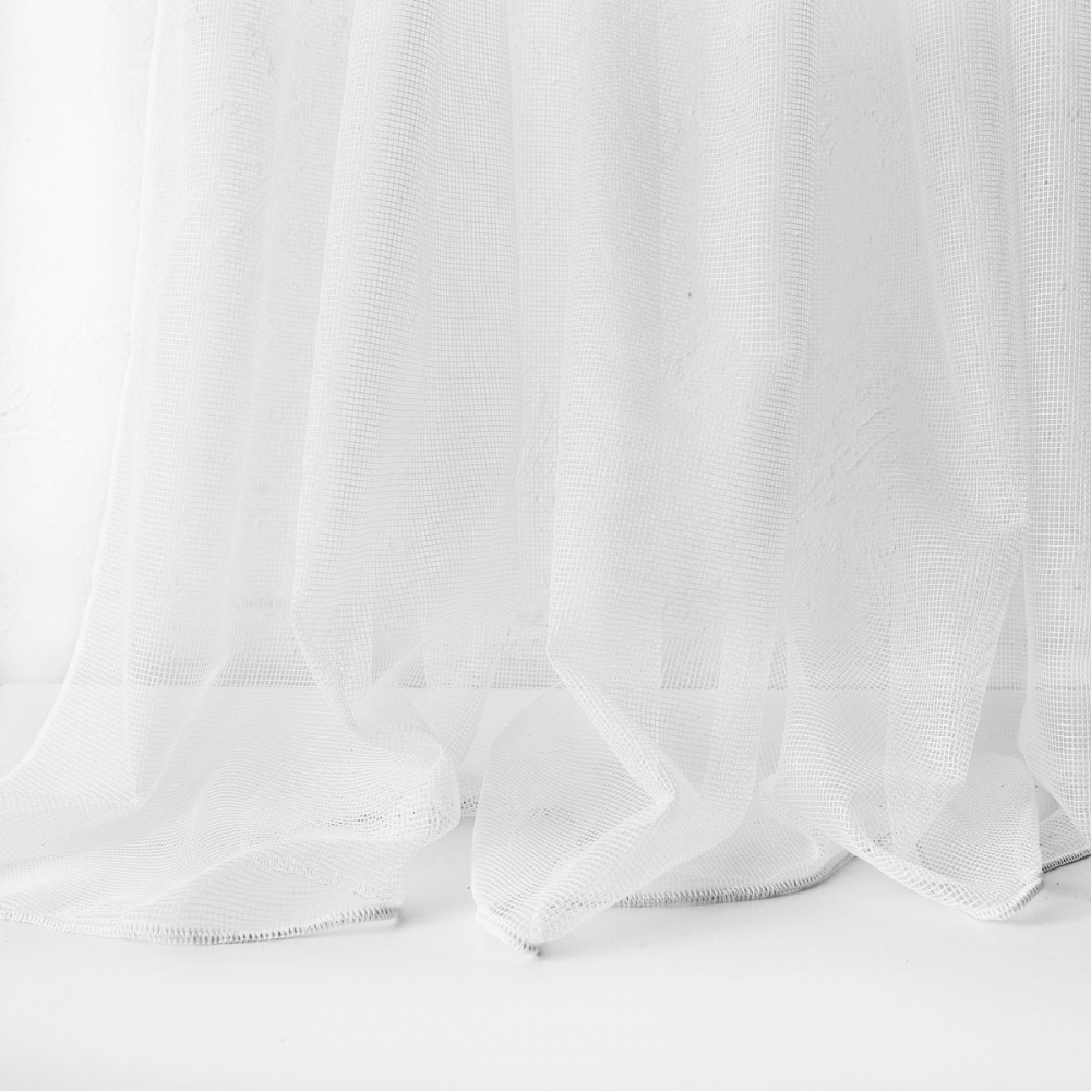 Прямая однотонная портьера на прозрачной шторной ленте из легкой декоративной сетки. Состав - 100% полиэстер.