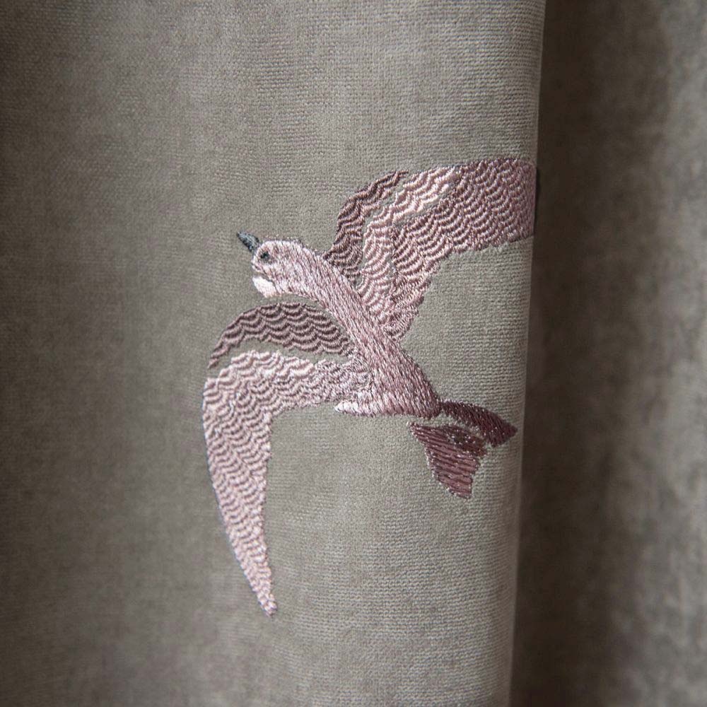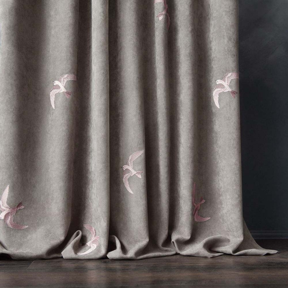 Прямые портьеры на шторной ленте из мягкой декоративной ткани "Софт" с вышивкой. В комплект входят декоративные подхваты. Состав - 100% полиэстер.