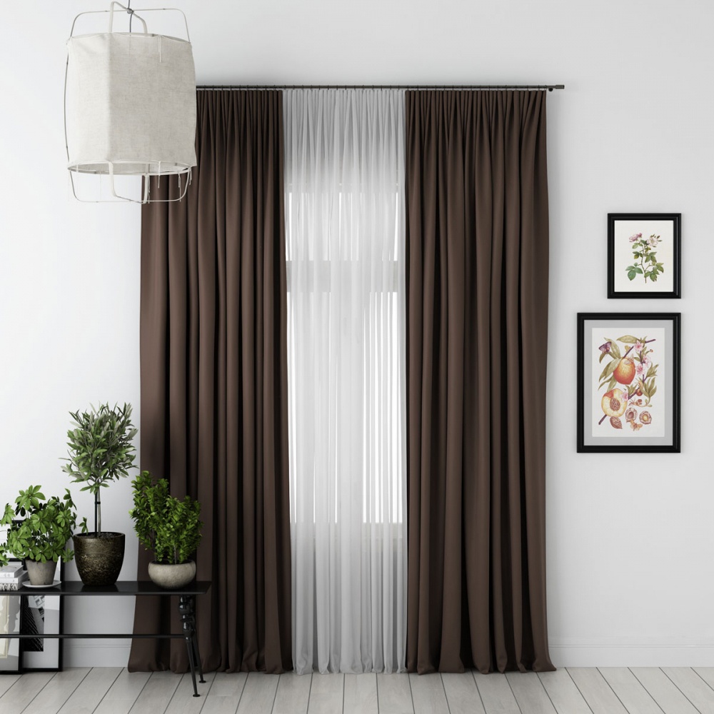 Комплект штор из светонепроницаемой плотной ткани Блэкаут. В комплект входит однотонная легкая вуаль. Состав - 100% полиэстер.